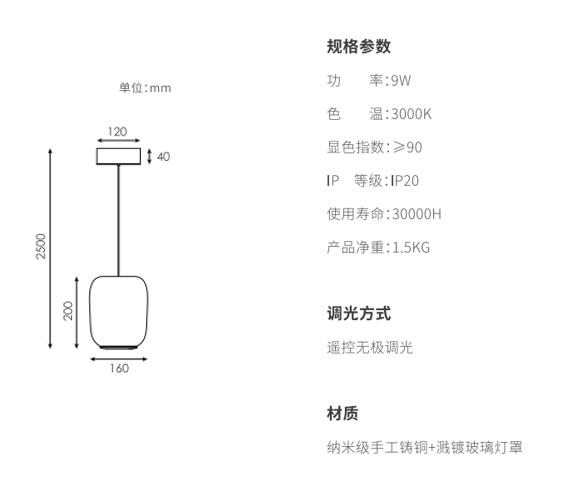 产品简介:手工吹制高硼硅玻璃,,圆润柔和;在内部的上路光透过玫瑰金色网格铸铜件投射出类似烛火的效果,,在空间里显得更加灵动,,,外层玻璃采用溅镀金属质感,,自下而上渐消,,,,同时镜面镀层折射环境光线,,使产品更加轻盈通透不压抑,,,下路光采用直下光,,,满足1.5米圆桌面充足照明。。。同时设计有防眩格栅,,桌面边缘的视线高度不会有直接光线照射到,,,体验舒适。。